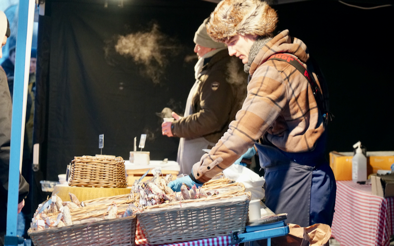 Reindeer still plays a central role in Sámi food culture today. At the market, you can find really good reindeer meat in all kinds of varieties. Don’t miss the dried meat, which is salted dried reindeer meat eaten as a snack. Reindeer soup is also a traditional dish, where chunks of reindeer meat are cooked with potatoes, root vegetables, and dumplings. Incredibly flavorful without beeing spicy. Suovas and sautéed reindeer are very popular, with suovas being the smoked version. You will also find Gahkkú, which is a traditional baked flatbread.
