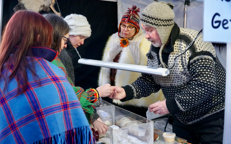 Sámi culture would not be complete without the reindeer. The nomadic animal that still roams freely in forests and mountains, searching for the best grazing. Only Sámi people are allowed to own reindeer in Sweden and practice reindeer herding. The Sámi people and the reindeer have always been closely connected. This is reflected in art, crafts, and culinary traditions. During the market days, there are many opportunities to take a closer look at this magnificent animal. Don´t miss the reindeer parade in central Jokkmokk or the reindeer race down by the Talvatis lake.