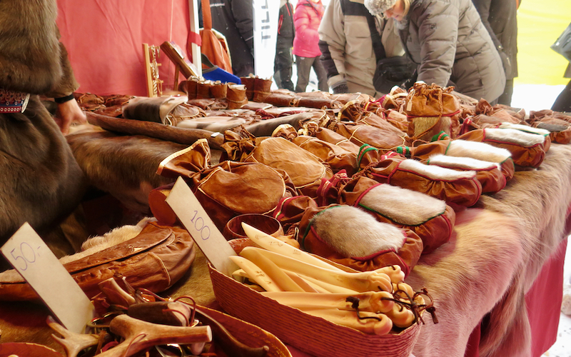Beautifully decorated knives, round cups carved out of wood, leather bags and fur shoes. Crafts are a central part of Sámi culture and are abundant in the market. In wood, leather, fur, reindeer antler, all materials sourced from nature, the most amazing crafts are created. The craft tradition is an old Sámi tradition that continues to thrive today. Keep an eye out especially for handmade knives with carved handles and beautiful patterns.