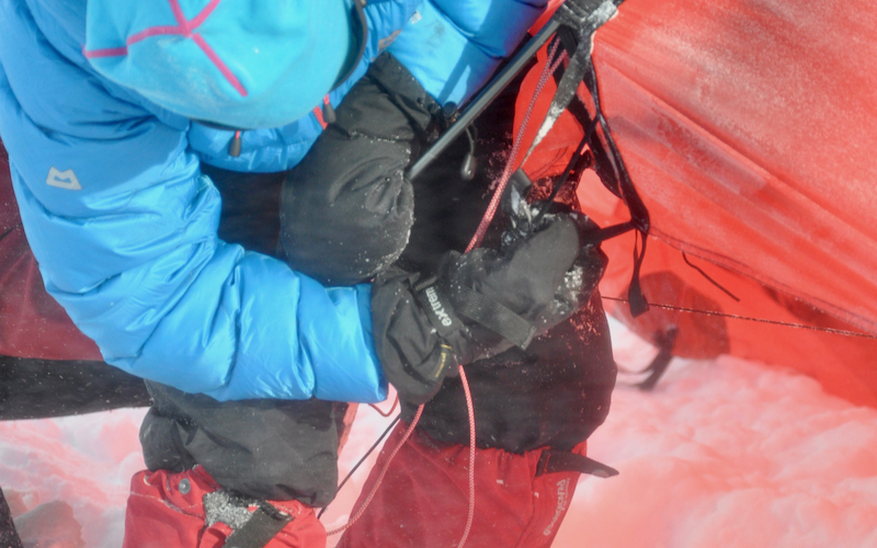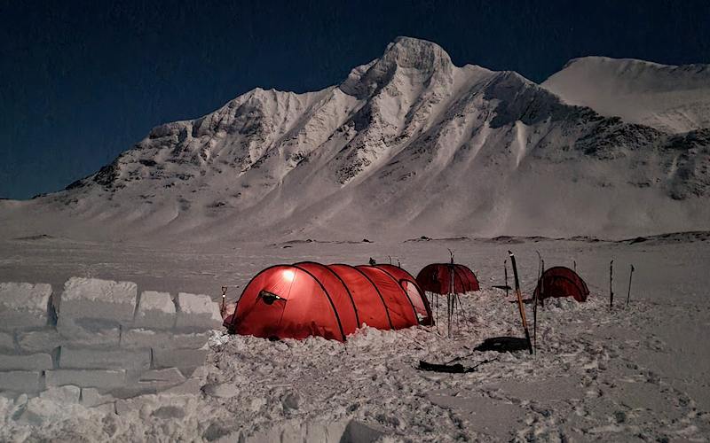 – Another tip for sleeping well is to prepare the campsite in the evening. I go around and check that everything is secured, all lines are tight, and that there are no loose items anywhere. That the pulka is next to the tent in a place I can find it even if it snows heavily during the night. I make sure that camp shoes and boots are not left unprotected in the outer-tent, in case snow drifts in. If it picks up wind during the night, I know I have secured everything and can sleep peacefully. In general, I always pretend that the wind could come at any time. That way I practice a behavior that will help me the day the storm actually arrives.