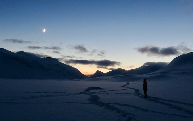 Imagine a starry winter evening, in the mountain in total silence. If you turn off your headlamp, you can see the faint northern lights dancing in the sky. Your breath turns to smoke, and it’s time to go to bed after a long day on the skis. Someone who knows what it’s like to sleep outside in the cold is Mirja Andersson, a mountain leader and one of the founders of Laponia Adventures.